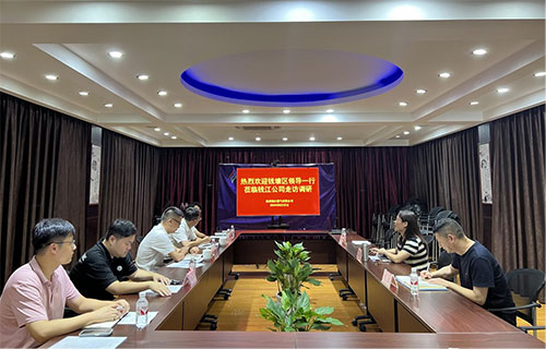 8月22日下午,钱塘区党工委员、区委常委周妙荣、区委办及大创小镇相关人员一行到钱江公司走访调研,公司总经理何香、副总经理张翔及办公室负责人陪同参加。