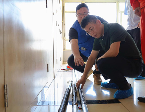 万董察看了正处于立管施工阶段的二楼住户和已完成立管更换的十楼住户家中情况,询问了材质特性、耐久性能及施工规范等关键技术指标,并就施工方案的具体落实和居民反馈意见与现场人员进行交流。