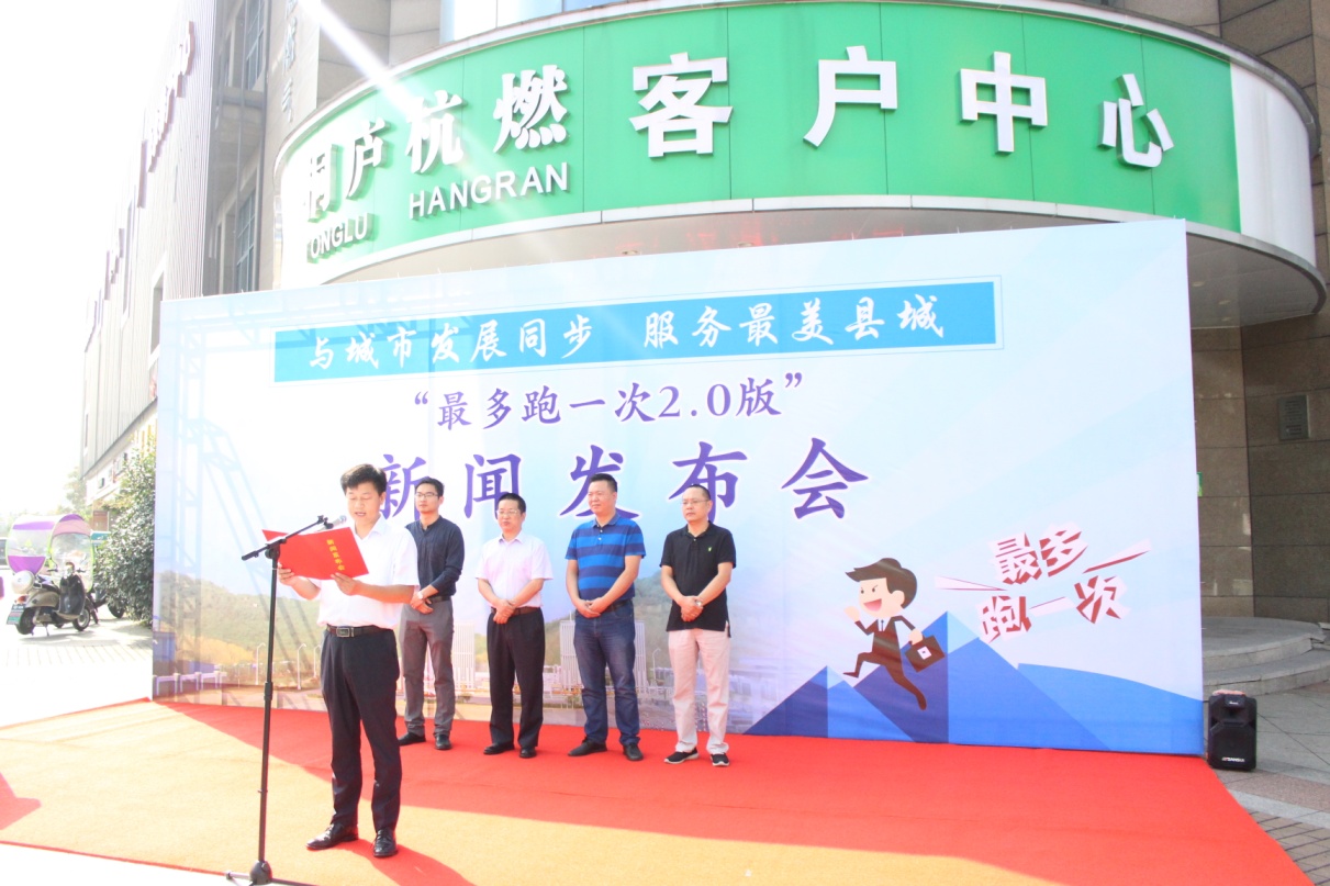 会上,桐庐杭燃总经理俞红伟作新闻发布会,通报2018年桐庐杭燃最多跑一次改革情况:一是成功实施两个转型升级,全力打造区县最佳营业厅,对大奇山路营业厅重新装修,升级服务软件系统;全力打造杭州西部最美加气站,对求是路汽车加气站提升改造。二是推出用户服务 “3+1”模式,即安全第一课、产品第一选、业务第一办、工商业用户一站式服务2.0版。