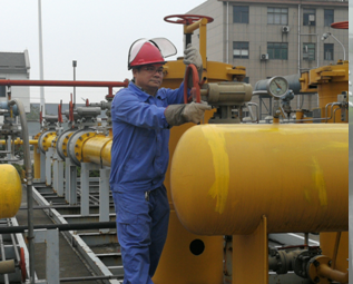 11月9日上午9时,输配运行部组织相关人员按照预定方案准时进行供气演练,演练前站内操作人员对储罐出口阀,调压器出口阀等阀门进行了仔细检查确保设备处于安全热备状态。9点35分站长开始按照演练方案对每位员工做好工作安排,操作员张卫东留守中控室,密切监视电脑上的各项压力、温度等数据,以便发现不安全因素后及时与生产区操作人员沟通,紧急情况下可通过中控室电脑进行各出液、进液气动阀开关进行远程控制。同时安排操作员赵雪明、朱文兵前往生产区现场开启2号储罐的出液阀、主调压器的进口阀门,进行管道预冷,预冷结束后将阀门缓慢的打开,开始向城市管网供气,经演练检测供气设备均正常运行。为检验每位员工对供气流程操作的应急能力,站长轮换安排每位员工对供气设备及开关阀门分别进行了实践操作。最后,由公司领导对每位员工的操作能力进行了打分评级。