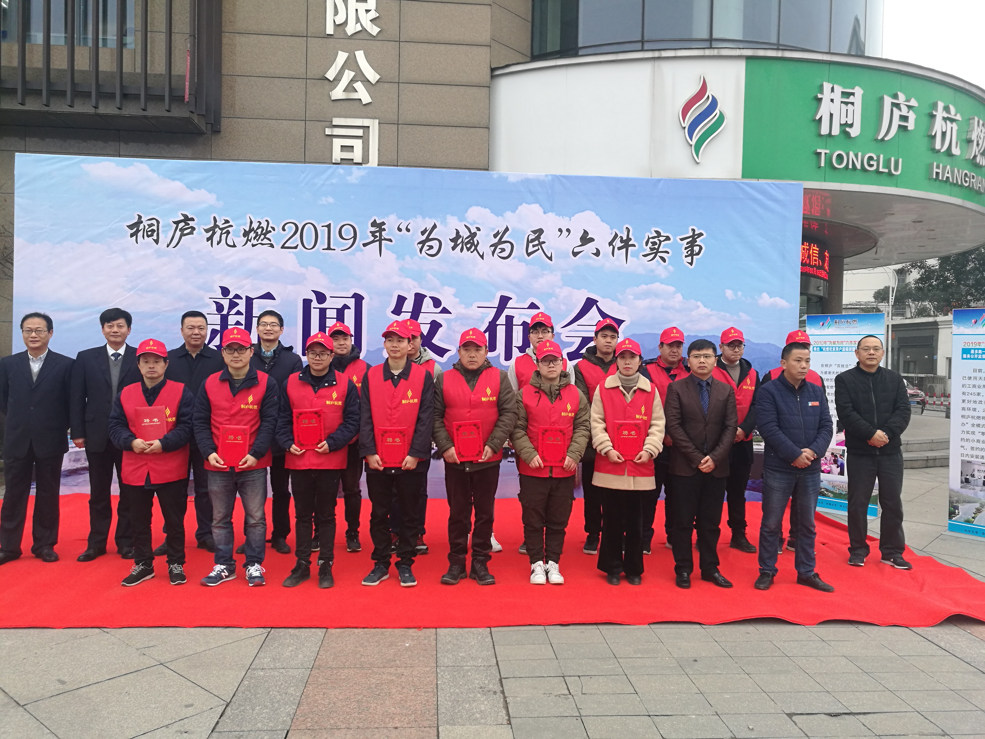 在现场,桐庐杭燃宣布了2019年“为城为民”六件实事具体内容。同时还开展了平安小区共建启动仪式,为公司15名安全服务管家发放聘书。