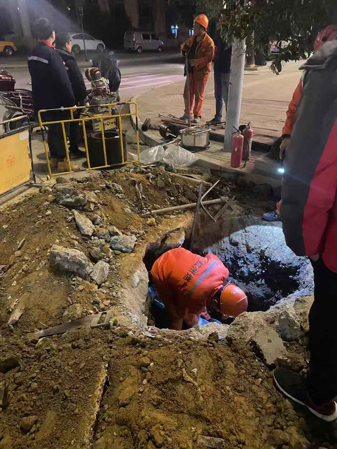 北环路和横政路位于横村镇中心地带,属于城区最主要的主干道,两条路横纵交叉,交叉口便是横村镇政府。2017年北环路和横政路人行道整治时,我公司就跟进埋设了燃气管道,但因其时道路路面未进行整治,且该路段为中心道路,人流、车流较大,因此开挖影响也较大,镇政府未同意我公司关于燃气管横穿道路连接两条路主管的实施方案。今年10月份,位于北环路和横政路交叉口的景秀广场小区住户向镇政府提出燃气配套要求。以此为契机,我公司于11月底通过道路开挖审批。