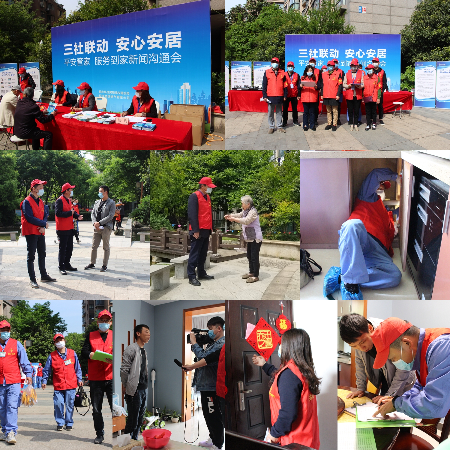 4月25日上午9点,桐庐杭燃联合县住建局在城南街道梅林社区聆江景园启动“三社联动,安心安居”活动,并邀请了桐庐电视台、桐庐日报等媒体。县住建局市政公共科科长郑顶、桐庐杭燃俞红伟、周云及5名社区志愿者、20名杭燃服务人员一起参加活动。当天的服务项目主要包括户内安全隐患整改、金属软管免费更换、户内安检预约、用户信息核对更新、管道燃气开通办理、燃气安全咨询、"19服务厅”宣传、自助抄表指导、杭燃优家产品推广、燃气用具改、换、装一条龙服务等。在活动开始前三天,燃气安全管家便已通过张贴通知、小区业主群通知等途径将活动时间、地点及内容广而告之。