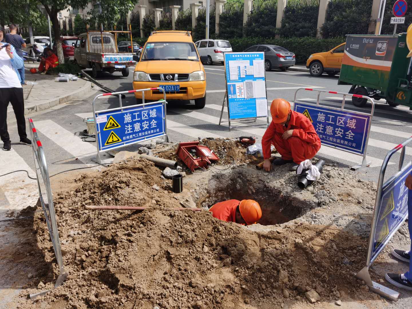 为实现原中杭路与迎春南路管线成环供气,改善中杭路商务区域路段单一供气局面,同时为不影响用户用气,把控每个施工环节,做足前期道路、人行道板开挖审批等工作,确认碰接点与施工点,对阀门启闭性能进行了检查。