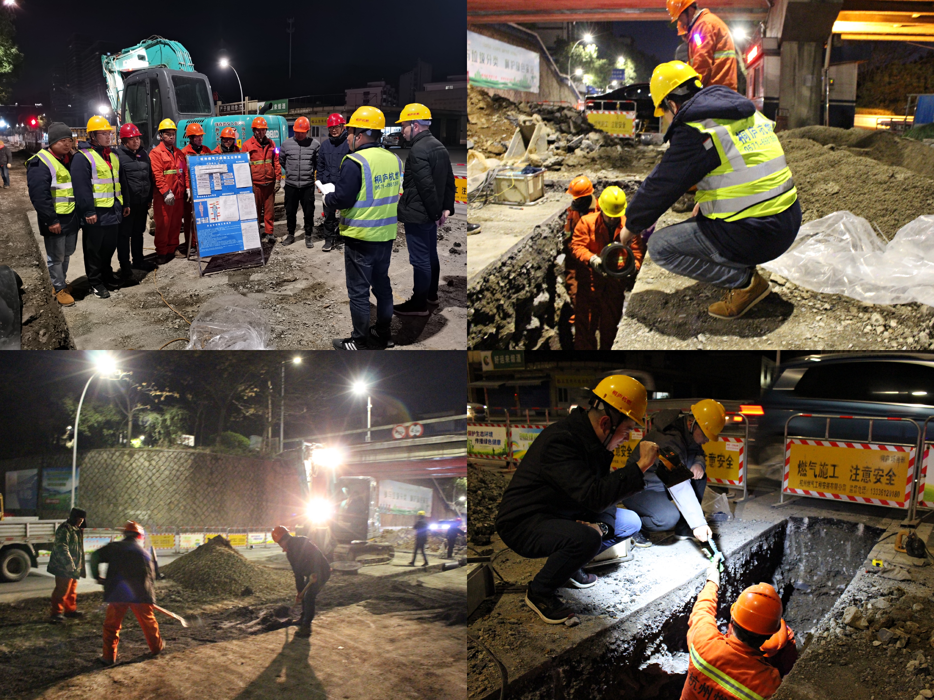 此次作业,是对富春路中压DE200管与富春西路DE200管进行三通阀门加装。为了尽可能减少对富春西路车辆通行的影响,开工时间定于晚上20:00。入夜后更是寒风瑟瑟,然而施工人员毫无怨言地在冰冷刺骨的工作坑中奋战。关阀、割接、焊接、置换、查漏,回填、清洁,施工仍有条不紊地进行着。直至次日凌晨6时,当第一缕阳光照进工地,此次割接作业终于完成。此时施工人员已经连续通宵工作10多个小时,双手和脸颊都冻得通红。但仍在确认停气区域恢复供气后,方始离开施工现场。