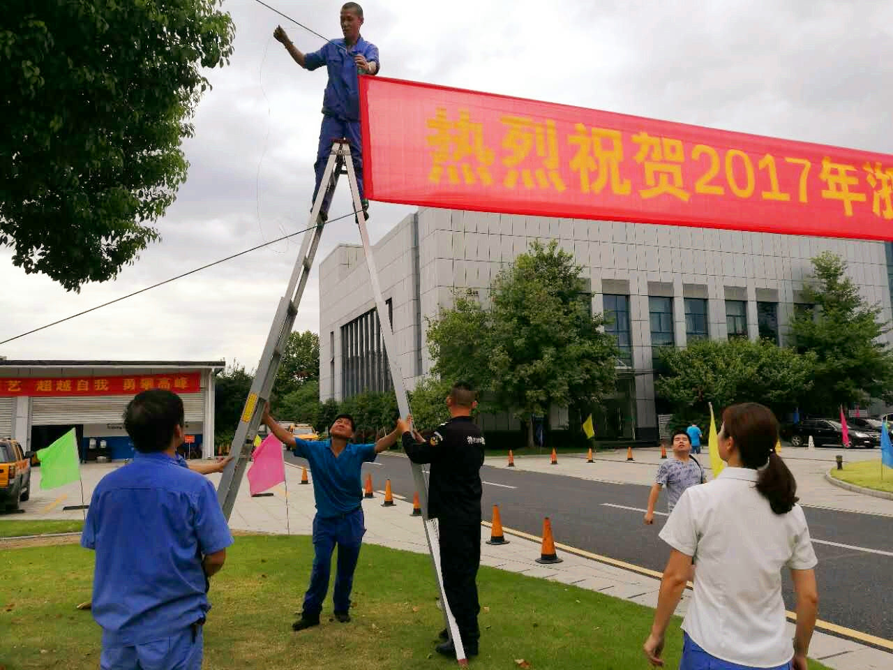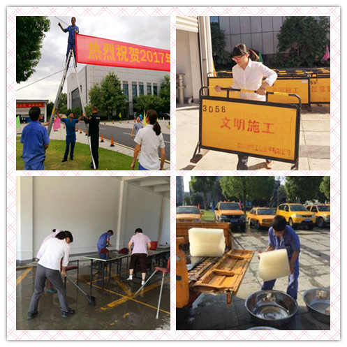 从赛前每天封闭式训练期间的后勤保障、墙壁修补,再到比赛期间赛场降温、保洁、就餐供应、会场布置等,23日至25日,维修、音控、食堂、保安、保洁等30多名后勤人发扬连续作战的峰会精神,始终以高昂的服务热情,一直在幕后紧锣密鼓、默默“加油”。高温酷暑,党员方健每天早上6点多就到市场排队购置大冰块,维修班宋薛昌、吴雄豪等老同志克服高血压、主动登高悬挂横幅,和同事们一趟趟地搬运会议桌椅、比赛围栏;物管部2位女管家跑前跑后、张罗着保障工作……七堡物管部还准备了菊花茶、矿泉水、可乐等多种茶饮,为参赛队员送上一瓶瓶可口可乐,也寓意着“激情比赛、快乐工作”。