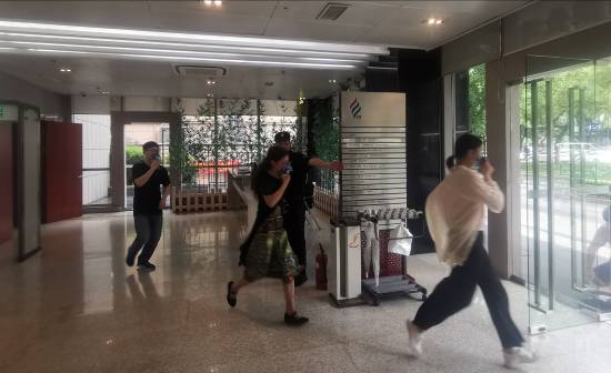 “半小时前,我们还在10楼会议室参加物业安全培训,对这次突击演练毫不知情,听到报警后一口气跑到一楼,用了95秒”……16:05分,从警报鸣响后不到5分钟时间,大厦各部室、单位83名参演人员全部安全疏散到西大门一楼指定地点。整场演练紧张有序、有条不紊,16:07分,演习圆满结束。