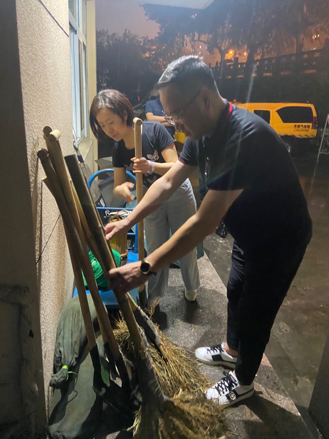 “生命至上,安全第一。”14:30,后勤分公司领导班子召开科室负责人紧急会议,传达集团防汛专题会议精神,层层动员、周密部署,加强风险警示。当晚18:00~22:30,分公司经理施永晟带队,携综合管理科科长殷笔闻一行冒雨前往湖墅北路69号出租房、康桥储备中心、北大桥基地等,深入办公楼、停车库、配电房、消控室等一线检查。每到一个场站、一家承租户,施经理嘱咐大家齐心协力、团结协作,时刻绷紧防暑防汛、消防用电、平安出行3根安全弦,认真落实防汛抗台措施。