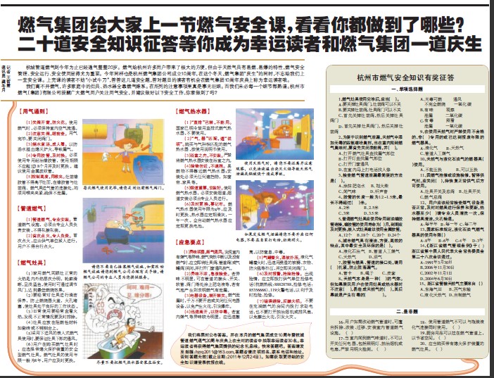 杭州市燃气安全知识有奖征答: