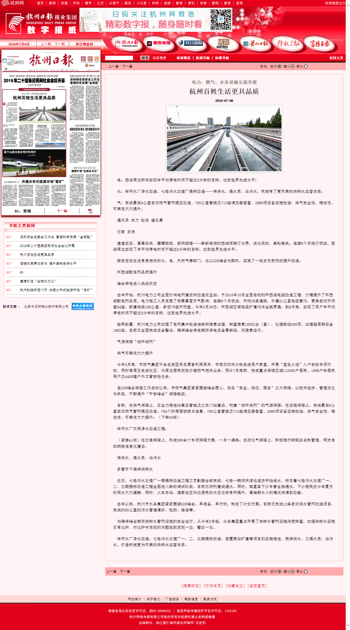 电力、燃气、水务设施全面升级 杭州百姓生活更具品质