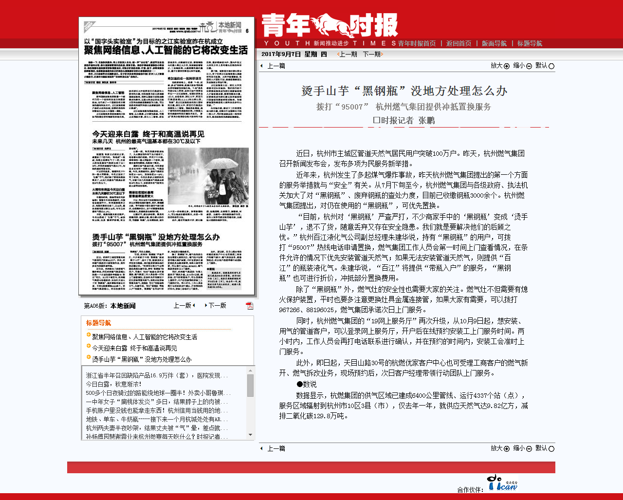 近年来,杭州发生了多起煤气爆炸事故,昨天杭州欧美成人视频 提出的第一个方面的服务举措就与“安全”有关。从7月下旬至今,杭州欧美成人视频 与各级政府、执法机关加大了对“黑钢瓶”、废弃钢瓶的查处力度,目前已收缴钢瓶3000余个。杭州欧美成人视频 提出,对仍在使用的“黑钢瓶”,可优先置换。