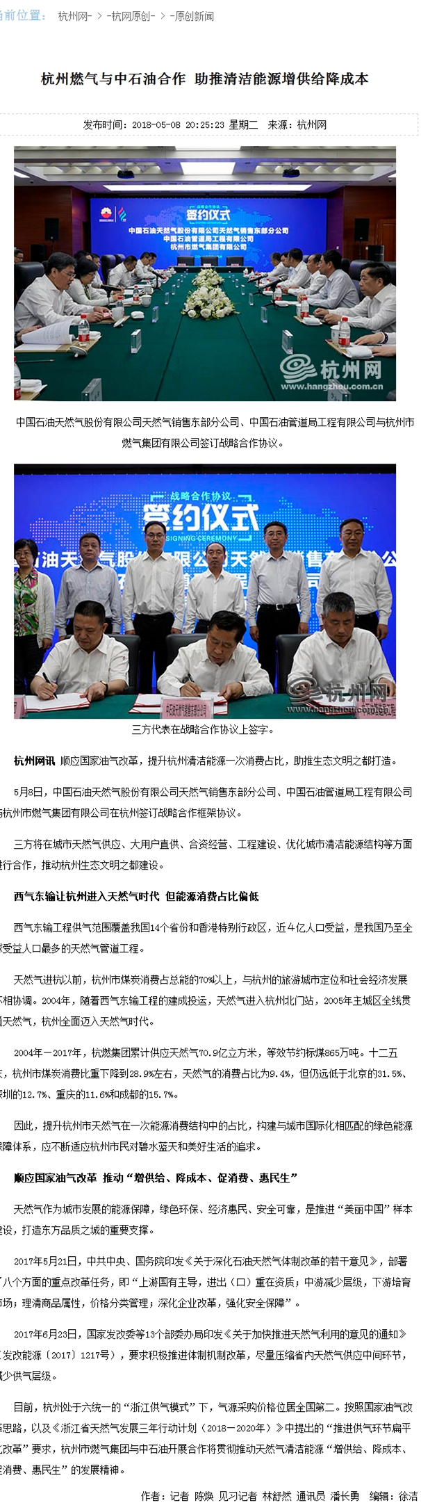 目前,杭州处于六统一的“浙江供气模式”下,气源采购价格位居全国第二。按照国家油气改革思路,以及《浙江省天然气发展三年行动计划(2018—2020年)》中提出的“推进供气环节扁平化改革”要求,欧美成人视频 与中石油开展合作将贯彻推动天然气清洁能源“增供给、降成本、促消费、惠民生”的发展精神。