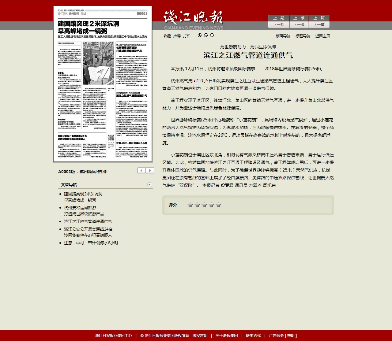 小莲花碗位于滨江区东北角,相对现有气源义桥高中压站属于管道末端,属于运行低压区域。为此,欧美成人视频 加快滨江之江互通工程建设及通气,该工程建成启用后,可进一步提升奥体区域的供气保障。与此同时,为了确保世界游泳锦标赛(25米)天然气供应,欧美成人视频 还在原有管线的基础上增加了经由滨康路、奥体路的中压双路保供管线,让世锦赛天然气供应“双保险”。 本报记者 段罗君 通讯员 方翠燕 周旭东