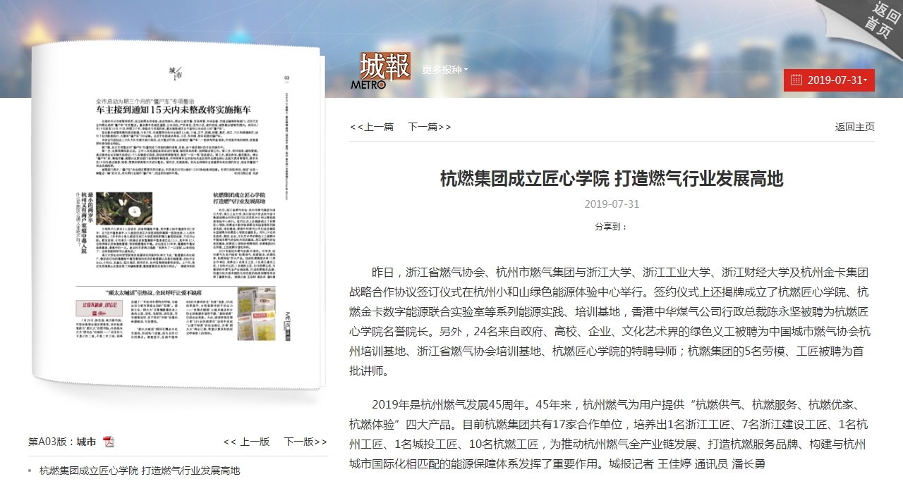 全产业链发展、打造杭燃服务品牌、构建与杭州城市国际化相匹配的能源保障体系发挥了重要作用。城报记者王佳婷 通讯员 潘长勇