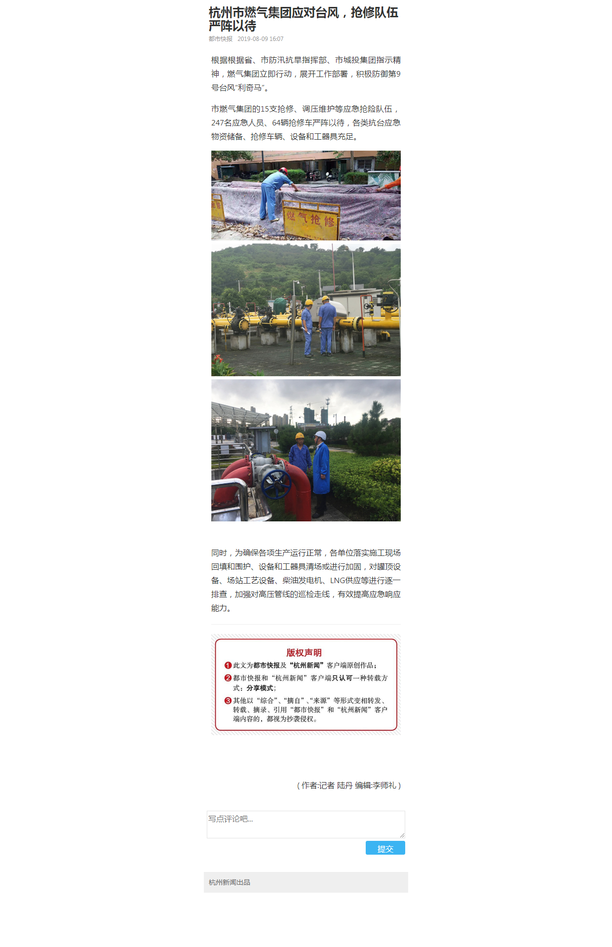 根据根据省、市防汛抗旱指挥部、市城投集团指示精神,欧美成人视频 立即行动,展开工作部署,积极防御第9号台风“利奇马”。