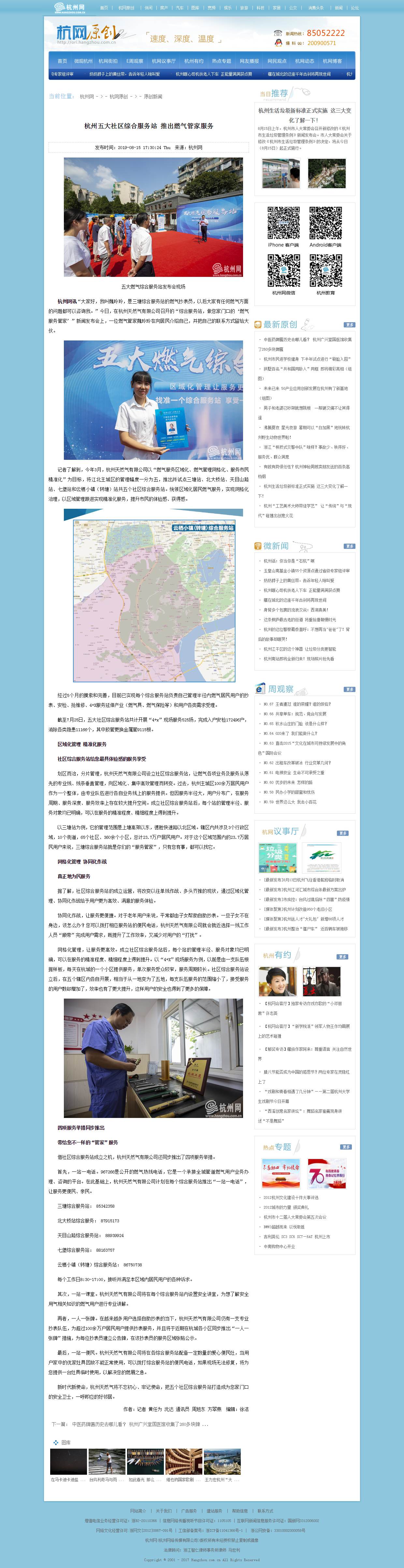 杭州网讯“大家好,我叫魏玲玲,是三塘综合服务站的燃气抄表员,以后大家有任何燃气方面的问题都可以咨询我。”今日,在杭州天然气有限公司召开的“综合服务站,做您家门口的‘燃气服务管家’”新闻发布会上,一位燃气管家魏玲玲在向居民介绍自己,并把自己的联系方式留给大伙。