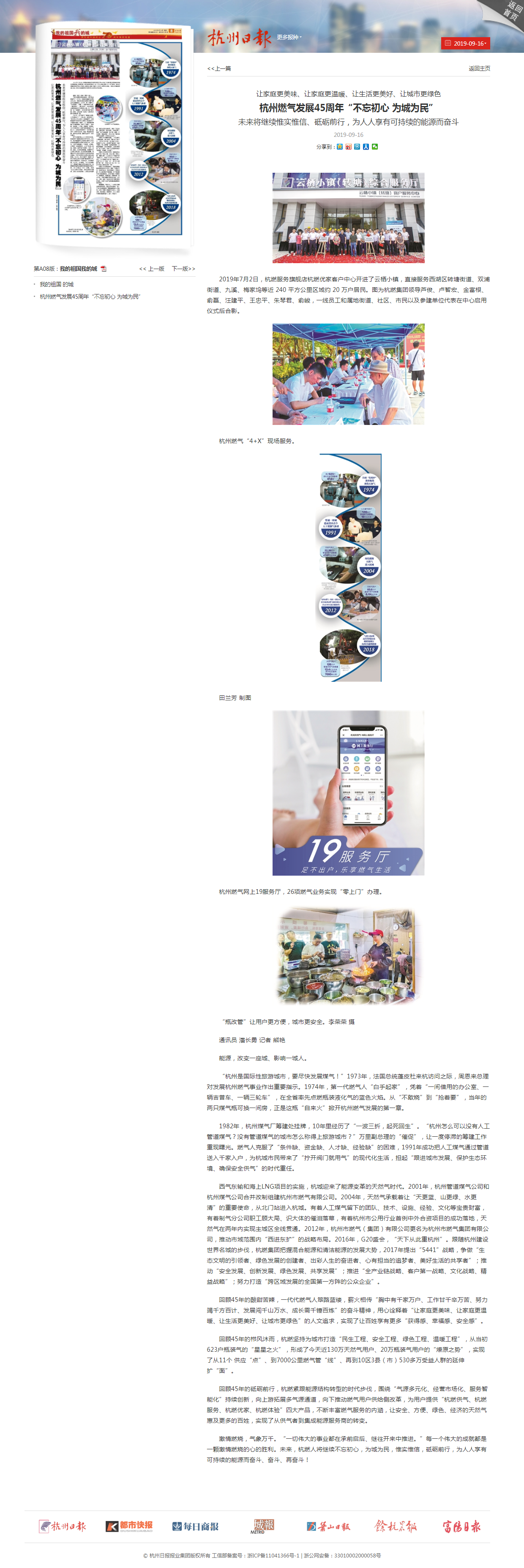 回顾45年的砥砺前行,杭燃紧跟能源结构转型的时代步伐,围绕“气源多元化、经营市场化、服务智能化”持续创新,向上游拓展多气源通道,向下推动燃气用户供给侧改革,为用户提供“杭燃供气、杭燃服务、杭燃优家、杭燃体验”四大产品,不断丰富燃气服务的内涵,让安全、方便、绿色、经济的天然气惠及更多的百姓,实现了从供气者到集成能源服务商的转变。