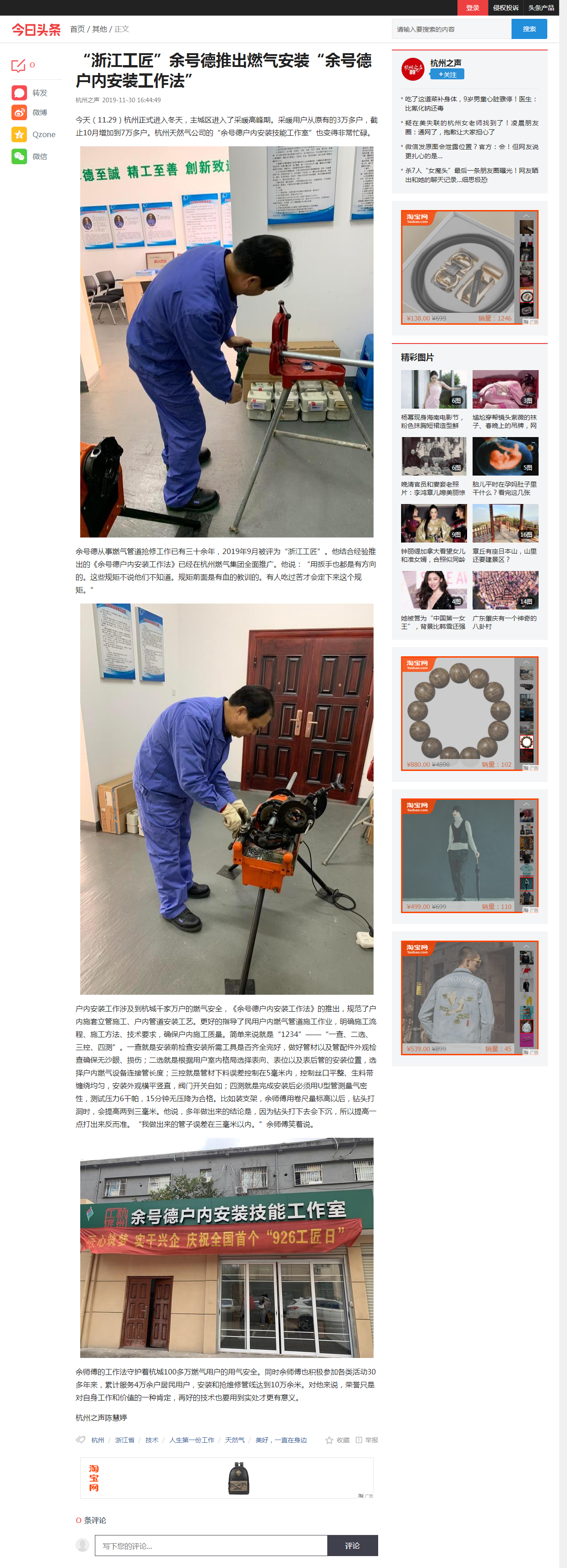 “浙江工匠”余号德推出燃气安装“余号德户内安装工作法”