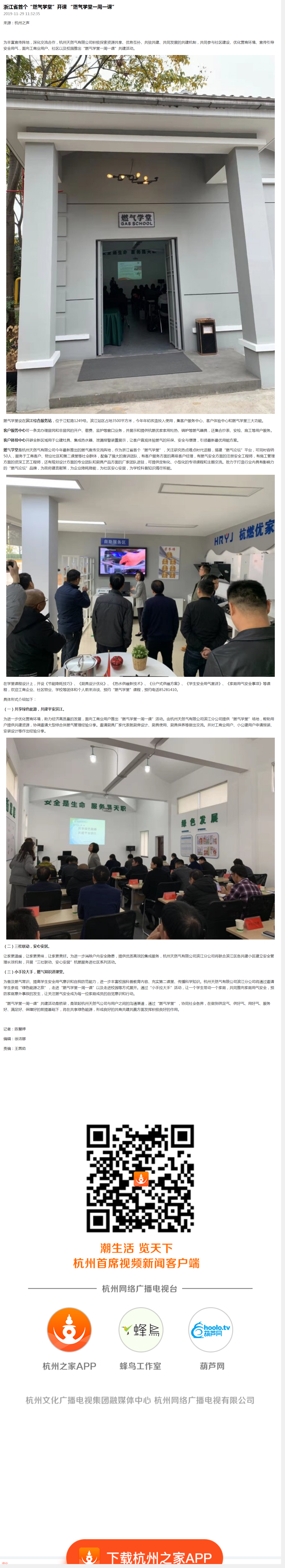 “燃气学堂一周一课”共建活动是桥梁,是架起杭州天然气公司与用户之间的沟通渠道,通过“燃气学堂”,协同社会各界,在做到供足气、供好气、用好气、服务好、满足好、保障好的前提基础下,将在共享绿色能源,形成良好的共商共建共赢方面发挥积极良好的作用。