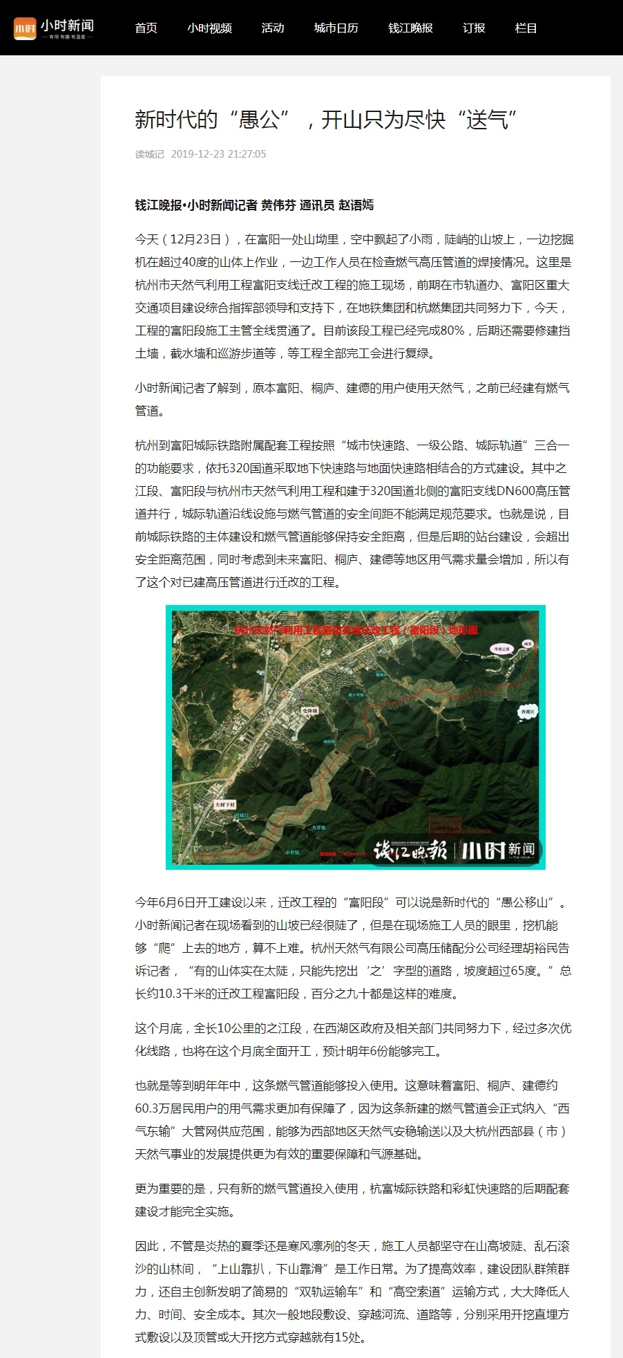 也就是等到明年年中,这条燃气管道能够投入使用。这意味着富阳、桐庐、建德约60.3万居民用户的用气需求更加有保障了,因为这条新建的燃气管道会正式纳入“西气东输”大管网供应范围,能够为西部地区天然气安稳输送以及大杭州西部县(市)天然气事业的发展提供更为有效的重要保障和气源基础。