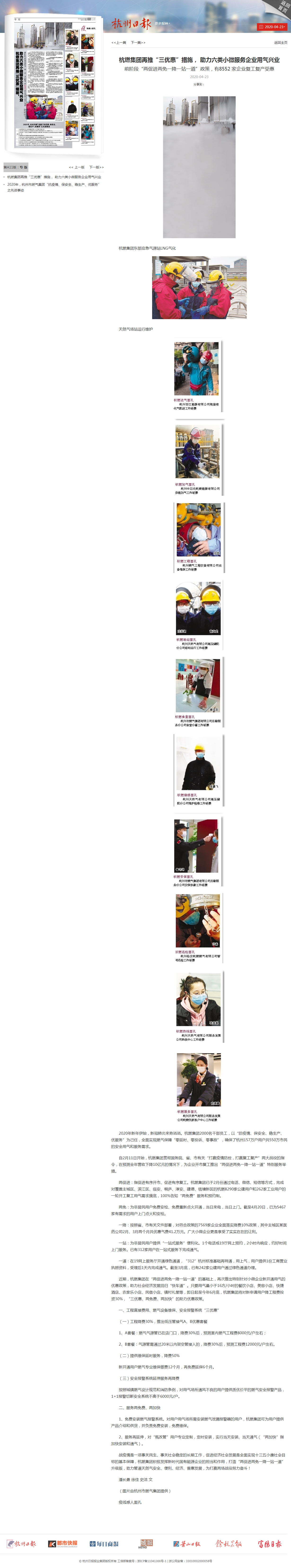 两免:为非居民用户免费安检、免费重新点火开通,当日来电,当日上门。截至4月20日,已为5467家有需求的用户上门点火和安检。
