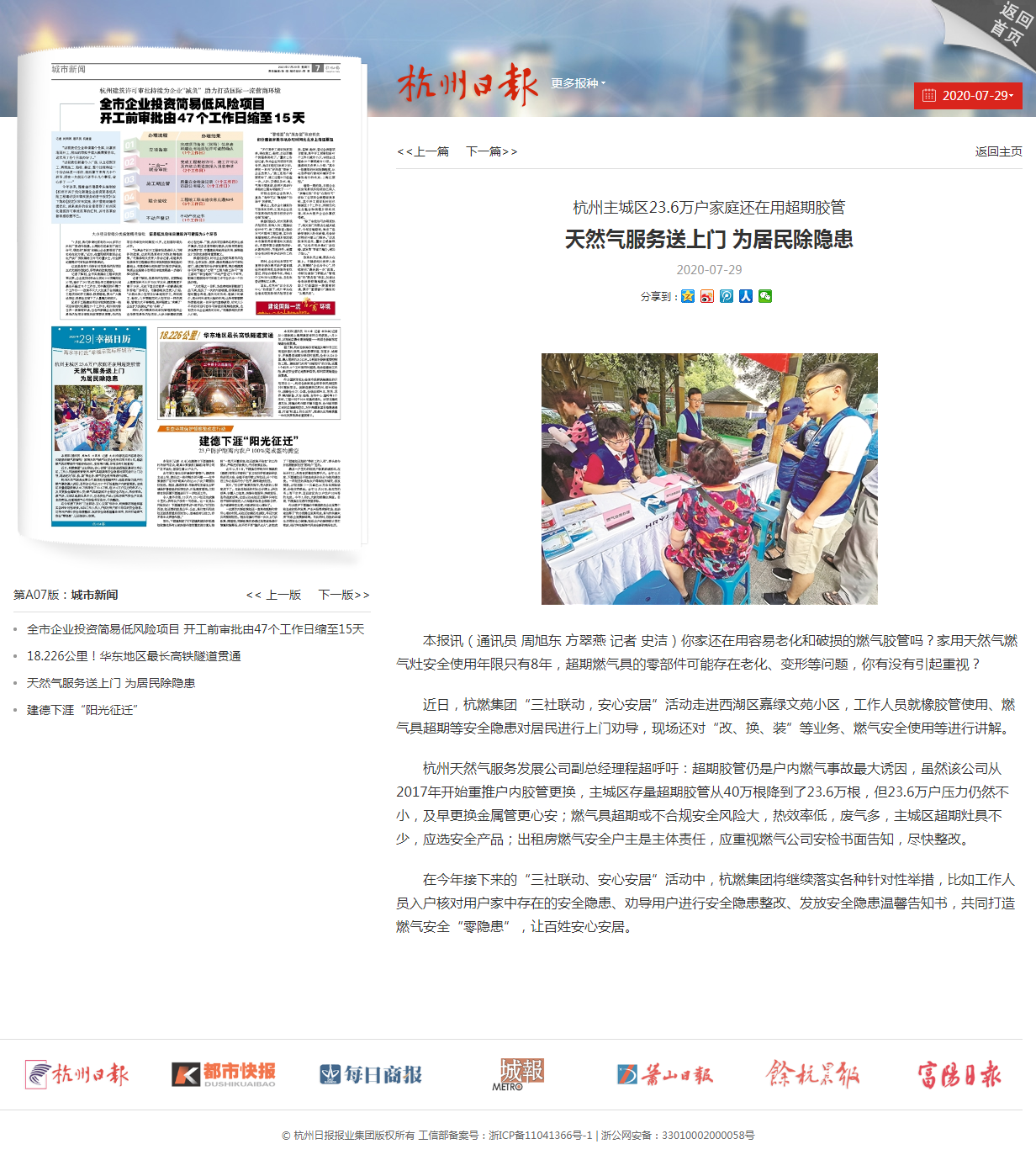 本报讯(通讯员 周旭东 方翠燕 记者 史洁)你家还在用容易老化和破损的燃气胶管吗?家用天然气燃气灶安全使用年限只有8年,超期燃气具的零部件可能存在老化、变形等问题,你有没有引起重视?