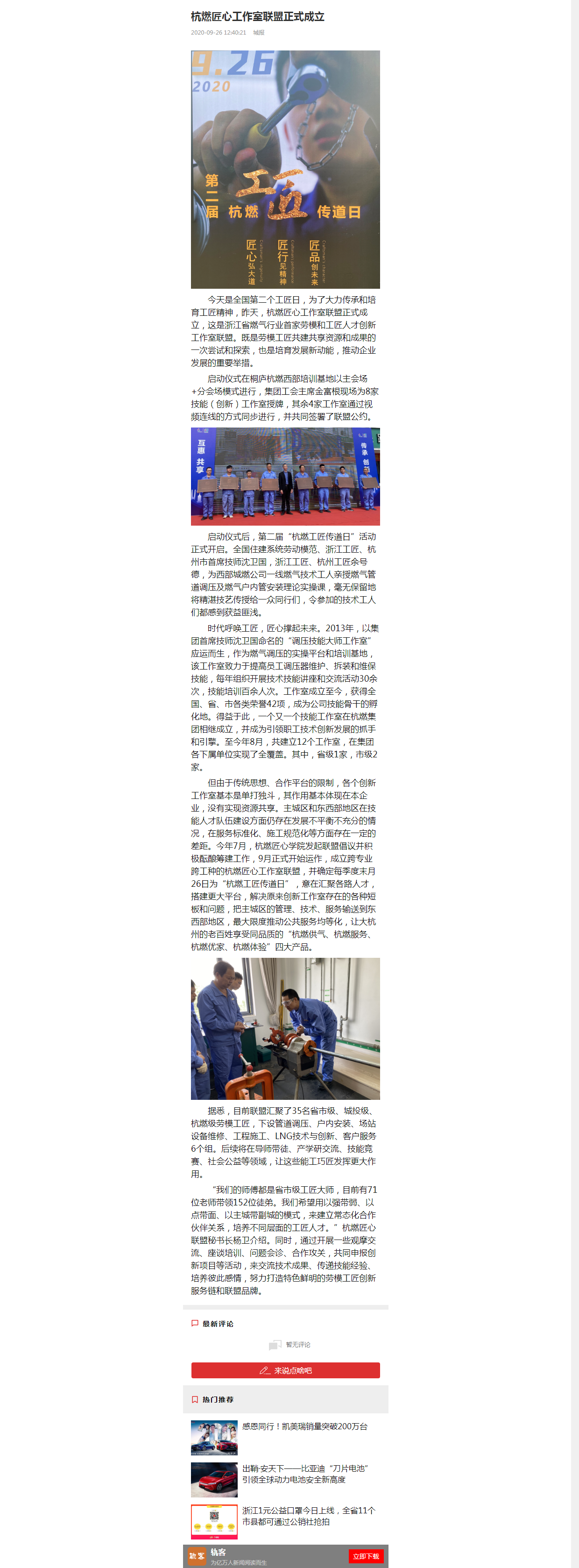 今天是全国第二个工匠日,为了大力传承和培育工匠精神,昨天,杭燃匠心工作室联盟正式成立,这是浙江省燃气行业首家劳模和工匠人才创新工作室联盟。既是劳模工匠共建共享资源和成果的一次尝试和探索,也是培育发展新动能,推动企业发展的重要举措。