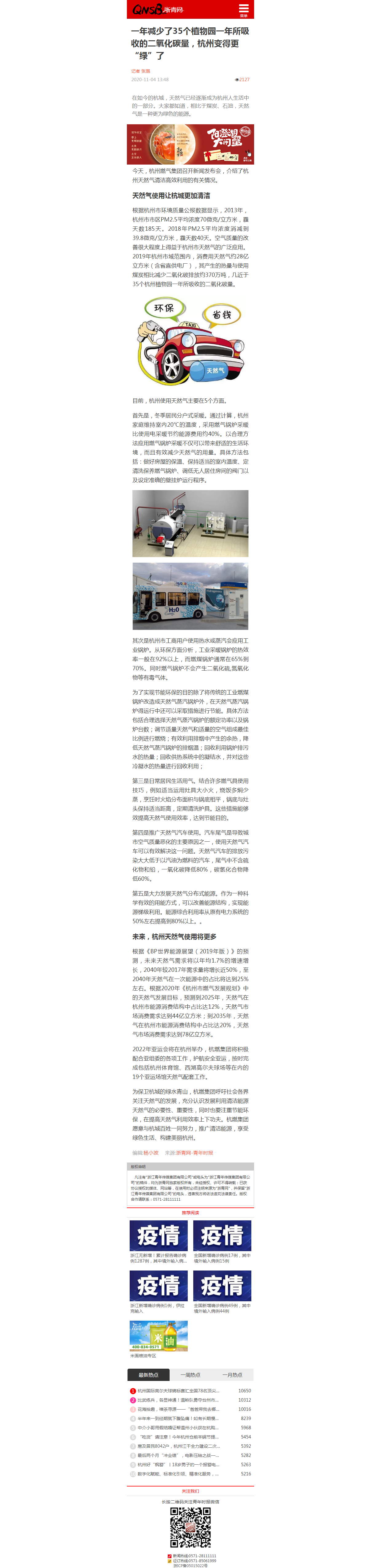 根据杭州市环境质量公报数据显示,2013年,杭州市市区PM2.5平均浓度70微克/立方米,霾天数185天。2018年PM2.5平均浓度消减到39.8微克/立方米,霾天数40天。空气质量的改善很大程度上得益于杭州市天然气的广泛应用。2019年杭州市域范围内,消费用天然气约28亿立方米(含省直供电厂),其产生的热量与使用煤炭相比减少二氧化碳排放约370万吨,几近于35个杭州植物园一年所吸收的二氧化碳量。