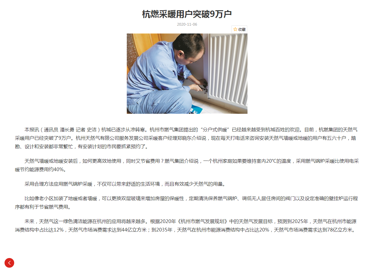 天然气墙暖或地暖安装后,如何更高效地使用,同时又节省费用?欧美成人视频 介绍说,一个杭州家庭如果要维持室内20℃的温度,采用燃气锅炉采暖比使用电采暖节约能源费用约40%。
