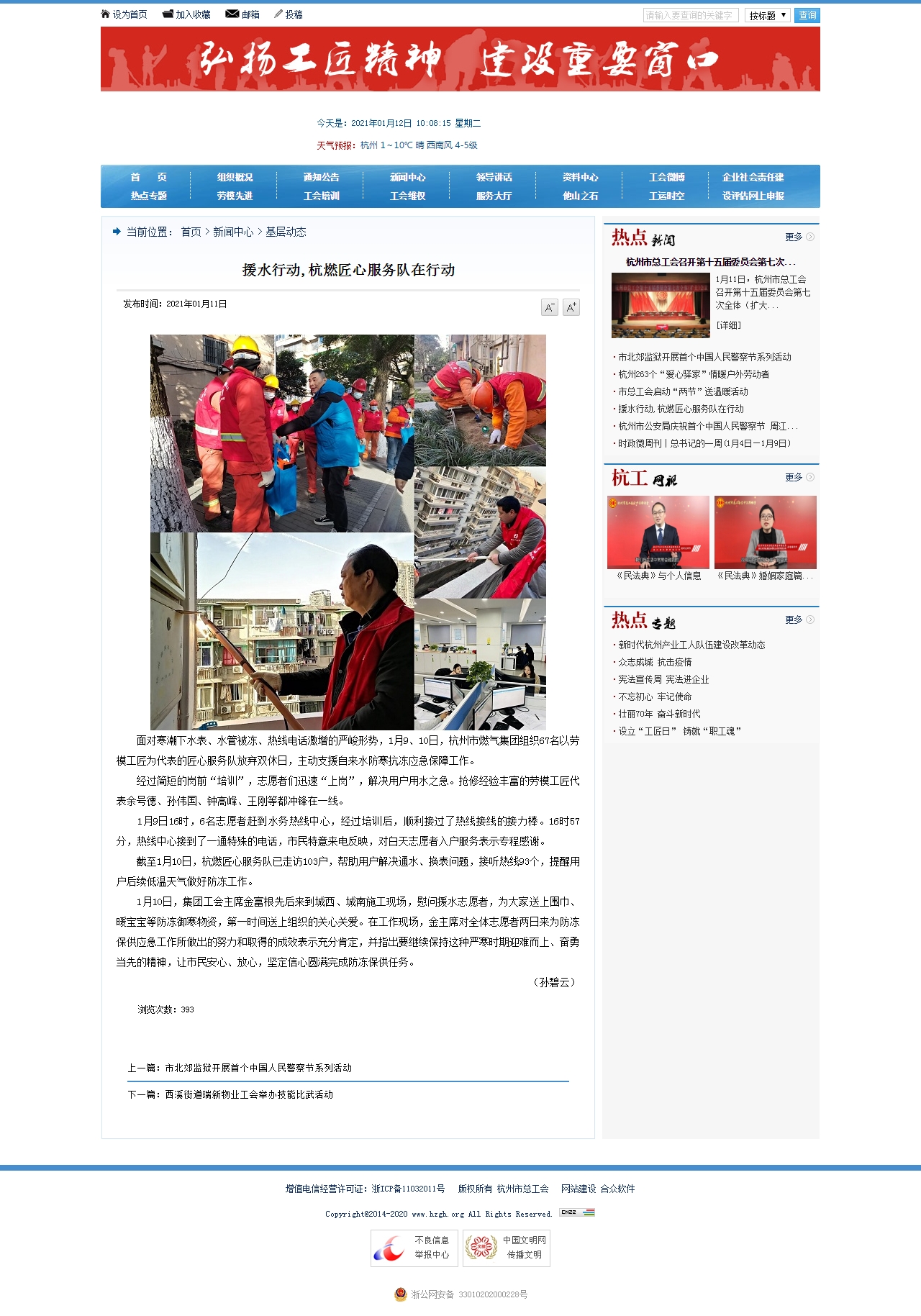 截至1月10日,杭燃匠心服务队已走访103户,帮助用户解决通水、换表问题,接听热线93个,提醒用户后续低温天气做好防冻工作。