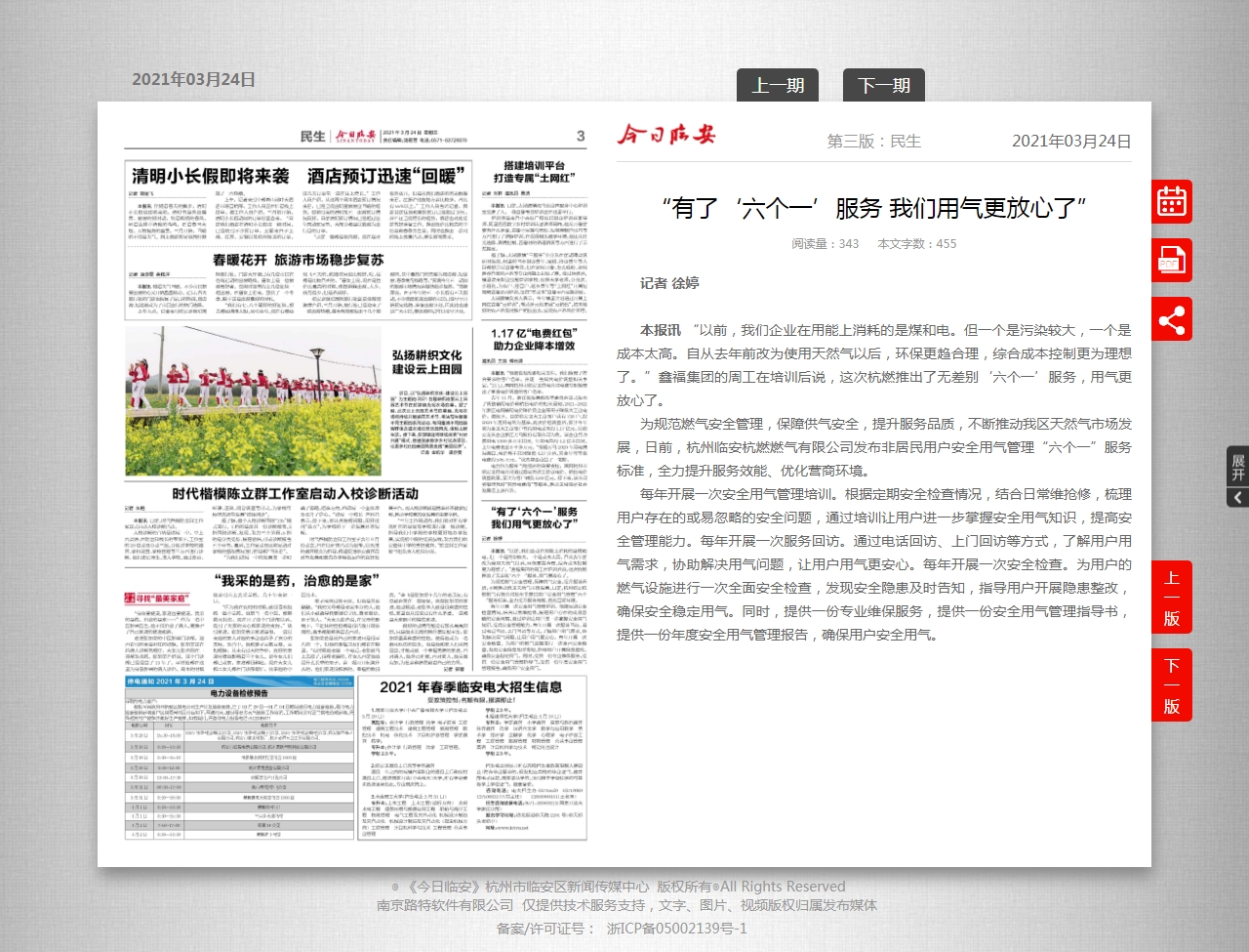 为规范燃气安全管理,保障供气安全,提升服务品质,不断推动我区天然气市场发展,日前,杭州临安杭燃燃气有限公司发布非居民用户安全用气管理“六个一”服务标准,全力提升服务效能、优化营商环境。