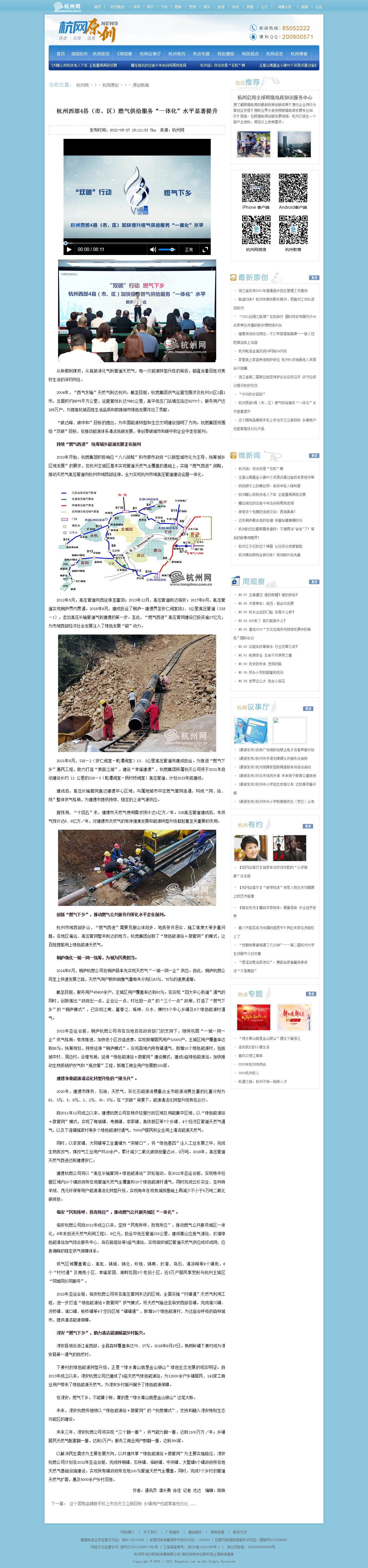 2004年,“西气东输”天然气到达杭州。截至目前,欧美成人视频 供气运营范围涉及杭州10区2县1市,总面积约6975平方公里,运营管线长达7981公里,高中低压门站调压站达6273个,服务用户达165万户,为提高杭城百姓生活品质和助推城市绿色发展作出了贡献。