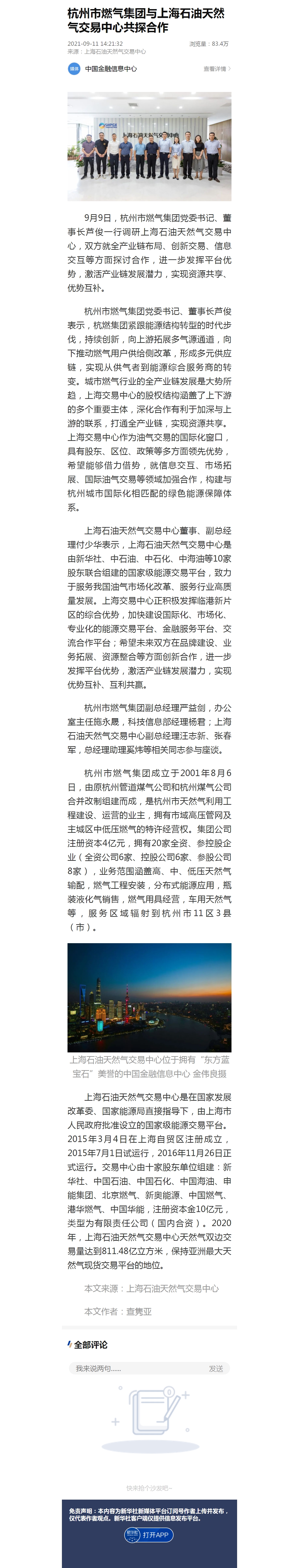 上海石油天然气交易中心董事、副总经理付少华表示,上海石油天然气交易中心是由新华社、中石油、中石化、中海油等10家股东联合组建的国家级能源交易平台,致力于服务我国油气市场化改革、服务行业高质量发展。上海交易中心正积极发挥临港新片区的综合优势,加快建设国际化、市场化、专业化的能源交易平台、金融服务平台、交流合作平台;希望未来双方在品牌建设、业务拓展、资源整合等方面创新合作,进一步发挥平台优势,激活产业链发展潜力,实现优势互补、互利共赢。