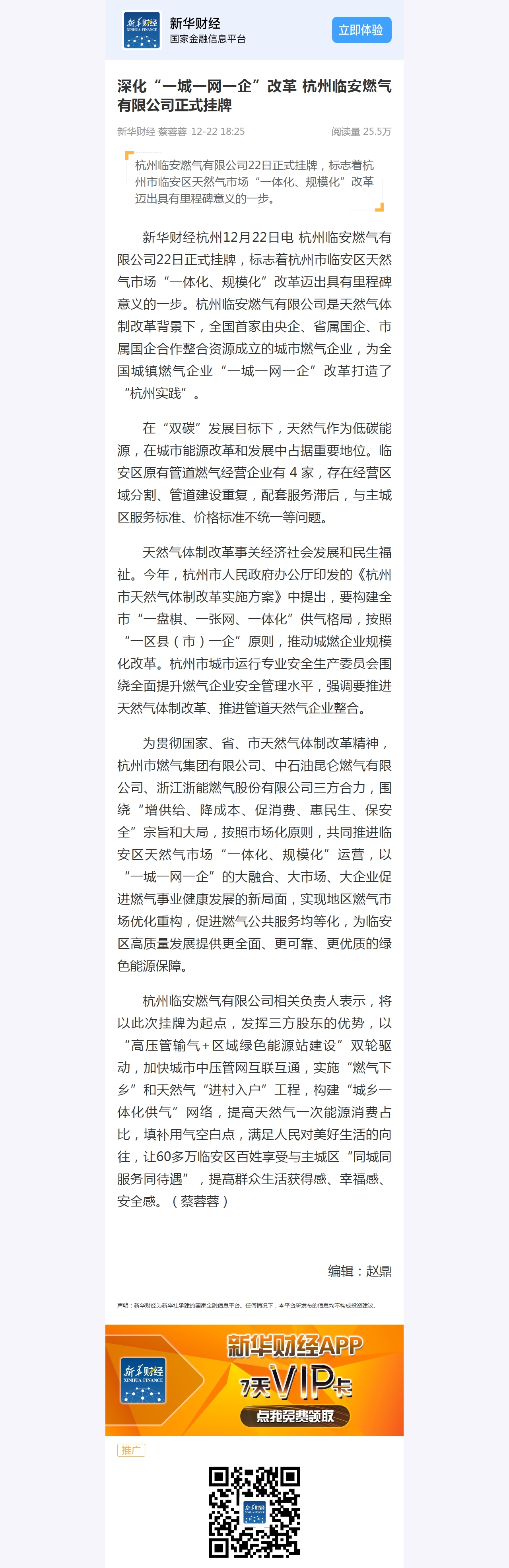 新华财经杭州12月22日电杭州临安燃气有限公司22日正式挂牌,标志着杭州市临安区天然气市场“一体化、规模化”改革迈出具有里程碑意义的一步。杭州临安燃气有限公司是天然气体制改革背景下,全国首家由央企、省属国企、市属国企合作整合资源成立的城市燃气企业,为全国城镇燃气企业“一城一网一企”改革打造了“杭州实践”。