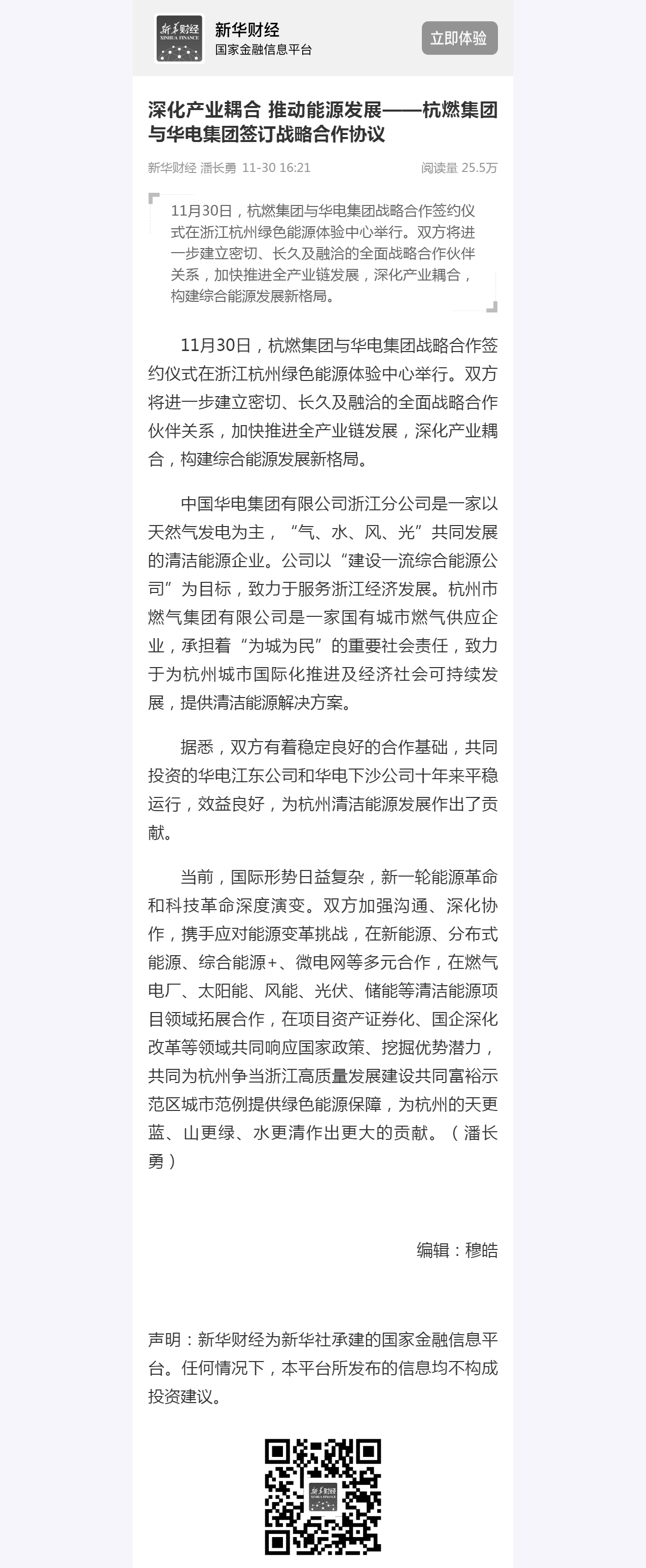 据悉,双方有着稳定良好的合作基础,共同投资的华电江东公司和华电下沙公司十年来平稳运行,效益良好,为杭州清洁能源发展作出了贡献。当前,国际形势日益复杂,新一轮能源革命和科技革命深度演变。