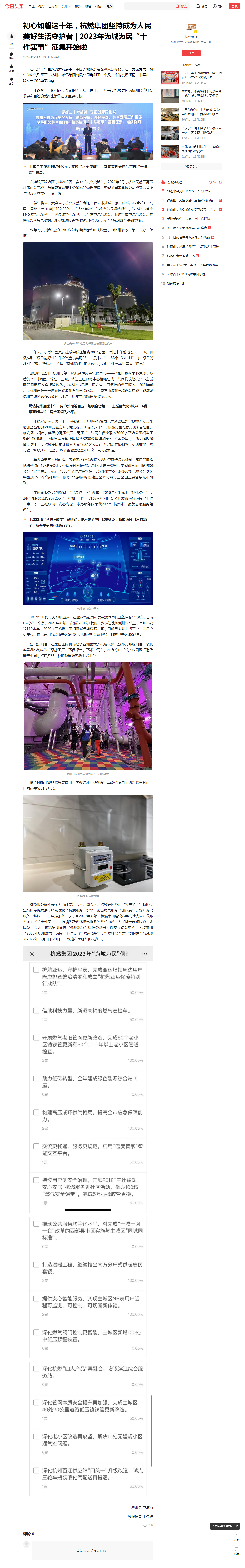 燃情杭州温暖十年,用户新增近百万,规模全省第一,主城区气化率从45%发展至95.1%,居全国领先水平。