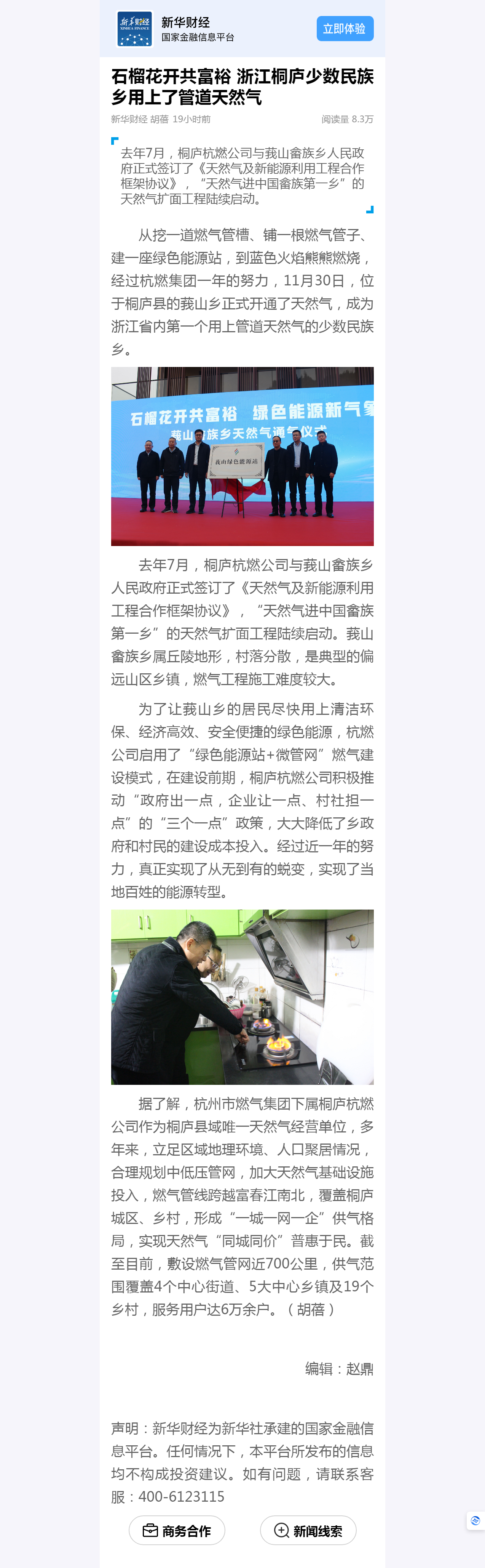 从挖一道燃气管槽、铺一根燃气管子、建一座绿色能源站,到蓝色火焰熊熊燃烧,经过欧美成人视频 一年的努力,11月30日,位于桐庐县的莪山乡正式开通了天然气,成为浙江省内第一个用上管道天然气的少数民族乡。