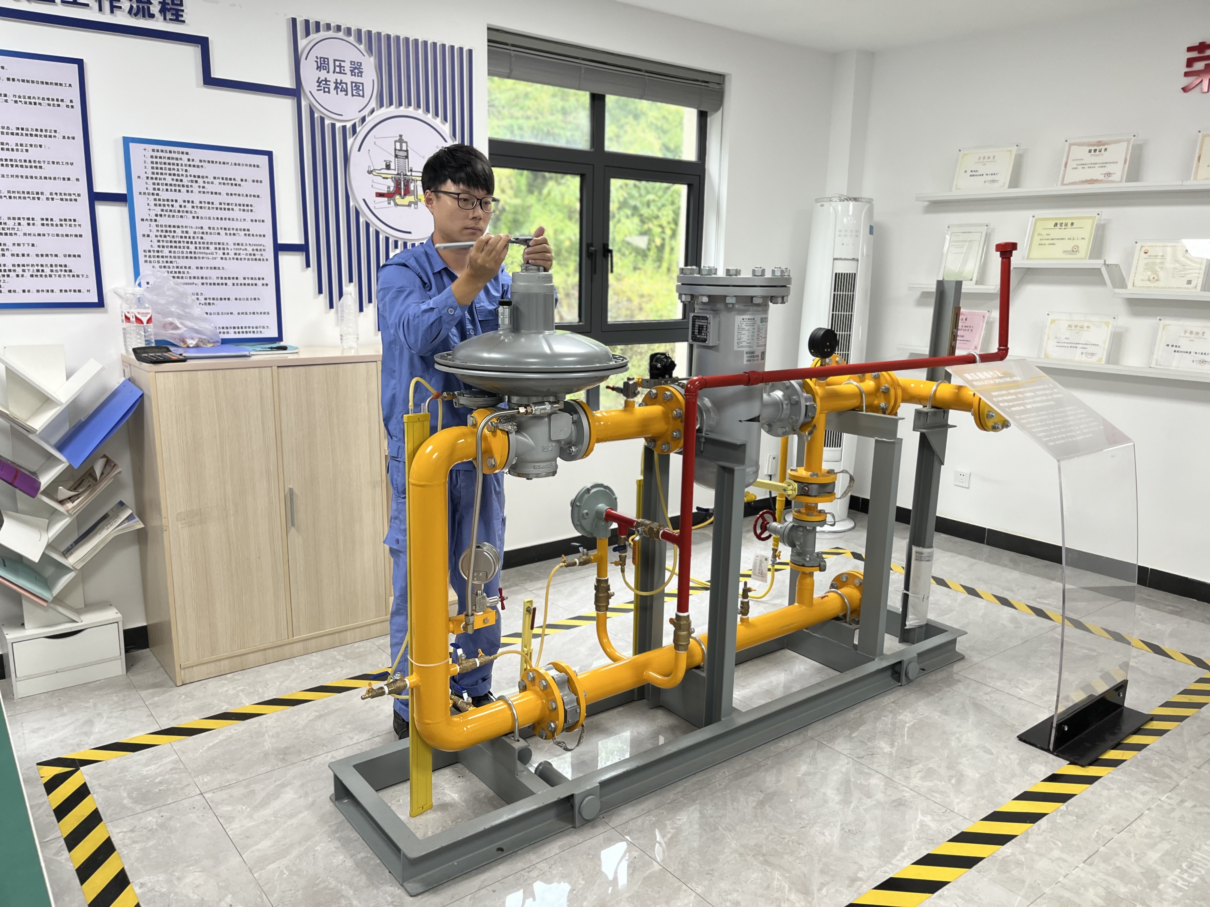 竞赛活动分为理论笔试和实操比武两部分,从管网运行知识掌握、操作规范等多角度综合考察检验各管网运行人员的实操技能水平和衔接配合能力。随着比赛开始,参赛选手们迅速进入竞技状态,对中低压调压器进行放散、切断,出口压力调试等,在规范操作的同时对工器具、压力表、水柱表等仪表进行正确使用和识读,参赛选手们动作娴熟,既争分夺秒又有条不紊,展现出了过人的专业素质。