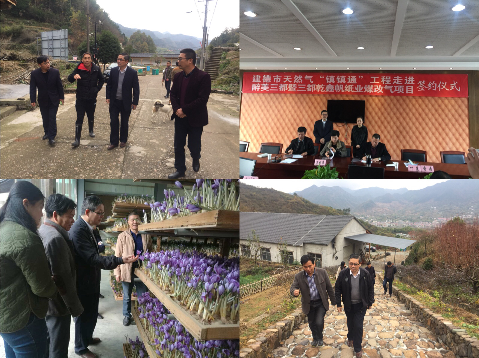 )作为“联乡结村”活动帮扶建德市三都镇的市级集团成员单位之一,11月22日,集团党委副书记俞磊携集团党群工作部一行,至建德市三都镇对接“联乡结村”工作,主动与三都镇政府及“联乡结村”帮扶村对接联系工作,并结合企业实际共同推进绿色能源村建设。