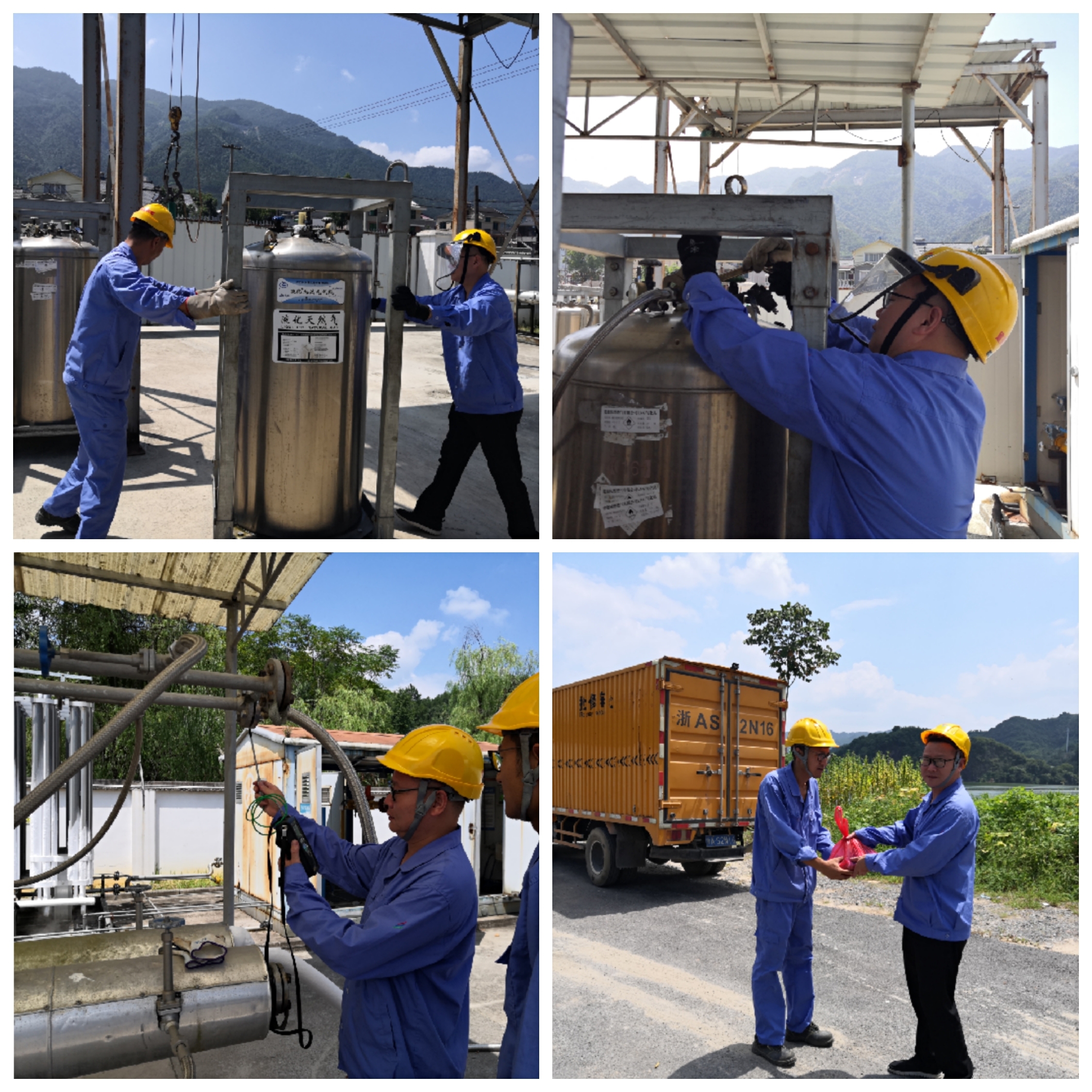 18日一早前往乾潭瓶组站,经岗前安全培训后,进入工艺区学习杜瓦瓶换瓶操作、场站加臭操作及周界报警设施点检工作,并与场站员工一同探讨小型瓶组站日常运营过程中,如何做好杜瓦瓶增压后平稳供气,如何平衡场站加臭时长、频次与用户终端检测两者之间的动态关系。下午前往梅城LNG气化站,围绕场站无泄漏检查标准,依次对站内燃气管道各法兰进行检漏,根据用量大小及时切换气化器等工作。跟岗期间,方国华始终和一线操作工并肩在高温下工作的行动,深深鼓舞、激励着高温下坚守在一线员工们。