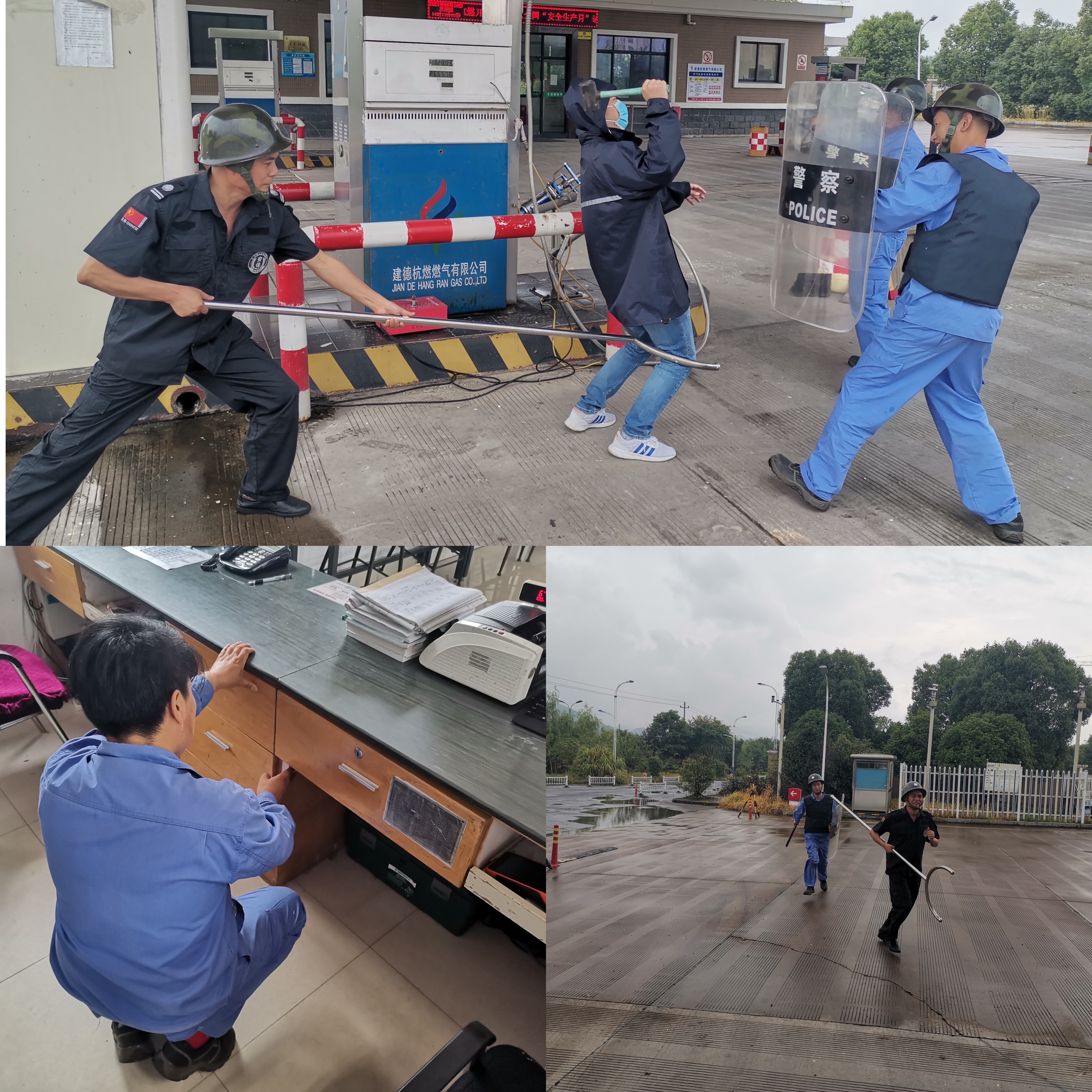 下午两点,反恐演练活动开始了。一名歹徒手拿榔头肆意破坏加气机并对工作人员进行施暴。加气站当班工作人员发现情况后第一时间按动“110联动装置”按钮,并穿好反恐装备进行阻拦。寿昌气化站接到消息后,第一时间通知公司仇飞副总经理和部门负责人,立即启动反恐防暴应急预案,开展应急处置。保安第一时间迅速到位协助制止歹徒,后勤保障救护组将伤员临时性包扎后送到医院,演练活动圆满结束。