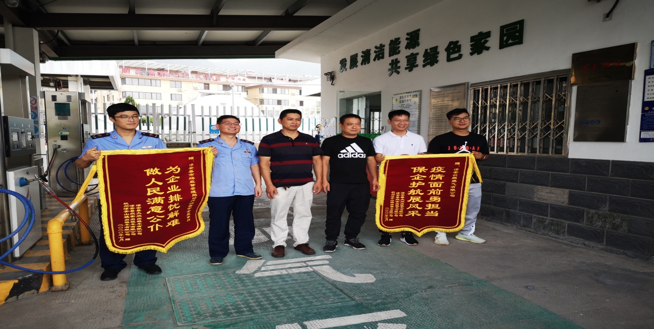 2020年7月15日上午9:30,在客运中心加气站上班的人、加气师傅、周边居民看到了这么一幕:一行人脸上开心的笑着,手上抬着两面锦旗向着加气站走来,后面还跟随着摄像的。大家都很疑惑:这是在做什么?在拍什么电影电视吗?