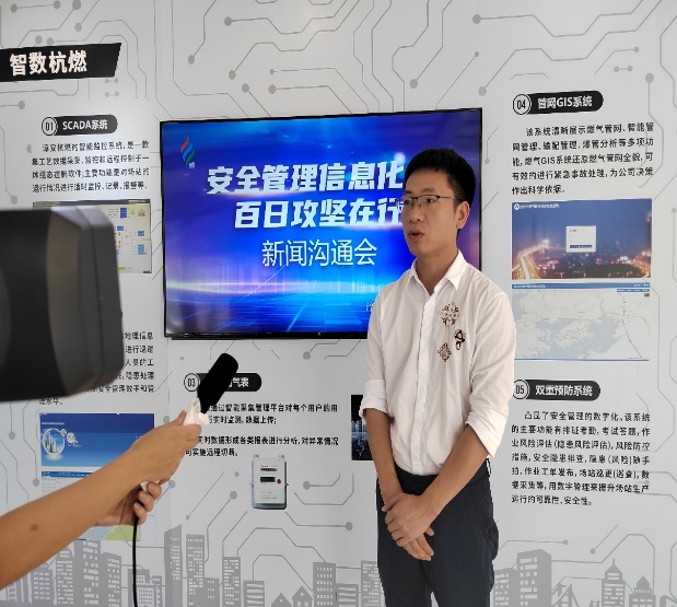 8月23日下午,淳安杭燃召开了“安全管理信息化,百日攻坚在行动”新闻沟通会。淳安电视台、今日千岛湖报社进行了现场采访报道,公司副总经理卢怀作新闻发布。