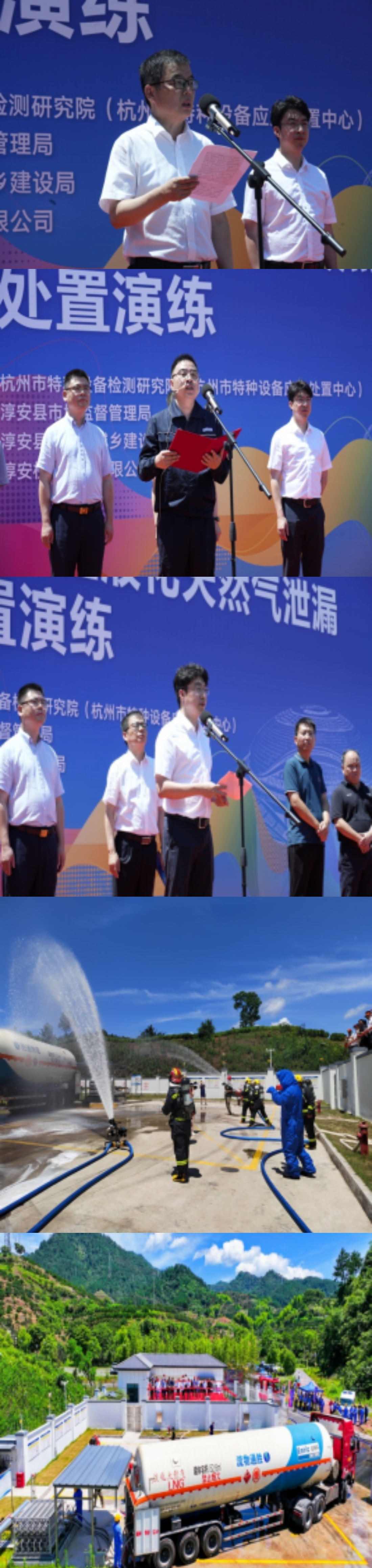 今年6月是全国第22个安全生产月,为贯彻落实安全生产月“人人讲安全、个个会应急”的主题精神,提高燃气泄漏事故应急处置能力,平安护航亚运盛会的顺利召开,淳安杭燃公司在亚运村LNG气化站开展了槽车泄漏应急处置演练。本次演练由杭州市市场监督管理局、淳安县人民政府主办,杭州市特种设备检测研究院、淳安县市场监督管理局、淳安县住房和城乡建设局、淳安杭燃燃气有限公司承办。