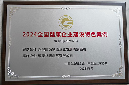 2025年8月3日,淳安杭燃公司收到中国企业联合会、中国企业家协会授予的“2024全国健康企业建设特色案例”荣誉牌匾。8月8日上午,县融媒体中心在县卫生健康局组织下,走进我公司开展专题视频采访,将淳安杭燃健康企业建设经验向全县推广。