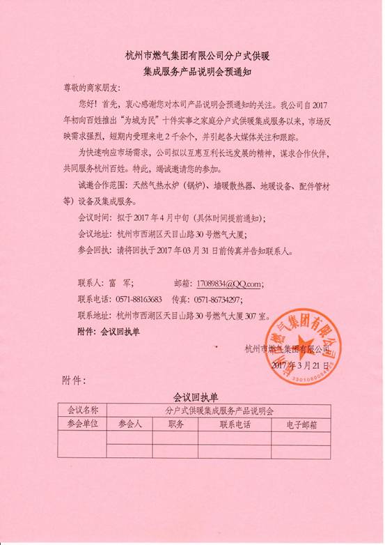 欧美成人视频 有限公司分户式供暖集成服务产品说明会预通知
