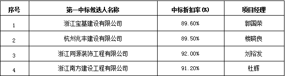 七、中标候选人结果: