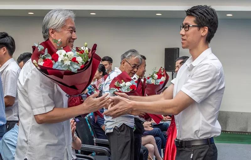 发展45年来作出贡献的老领导献花。感谢他们辛勤的付出和一直以来的关心、支持,感谢他们将自己的青春无怨无悔地献给了燃气公用事业。