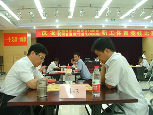 8月30日,窗外骄阳似火,七堡3号大楼多功能厅室内楚河汉界风起云涌。由(集团)公司工会主办、输配分公司承办的“职工体育竞技比赛”象棋赛正在此举行。